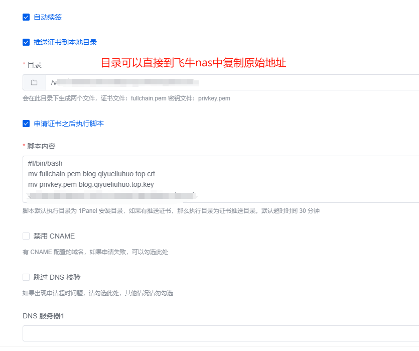 ### 以下配置是飞牛nas自定义证书自动续签功能